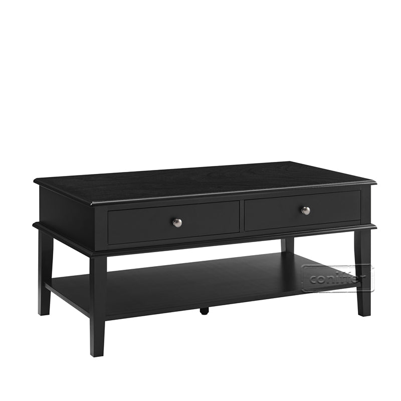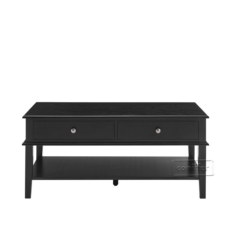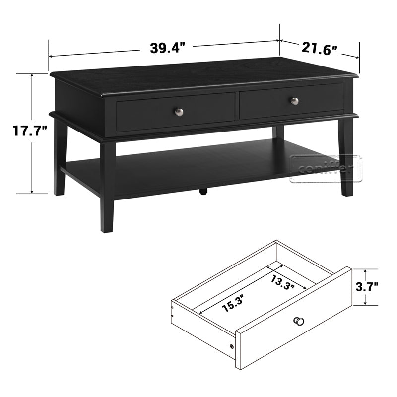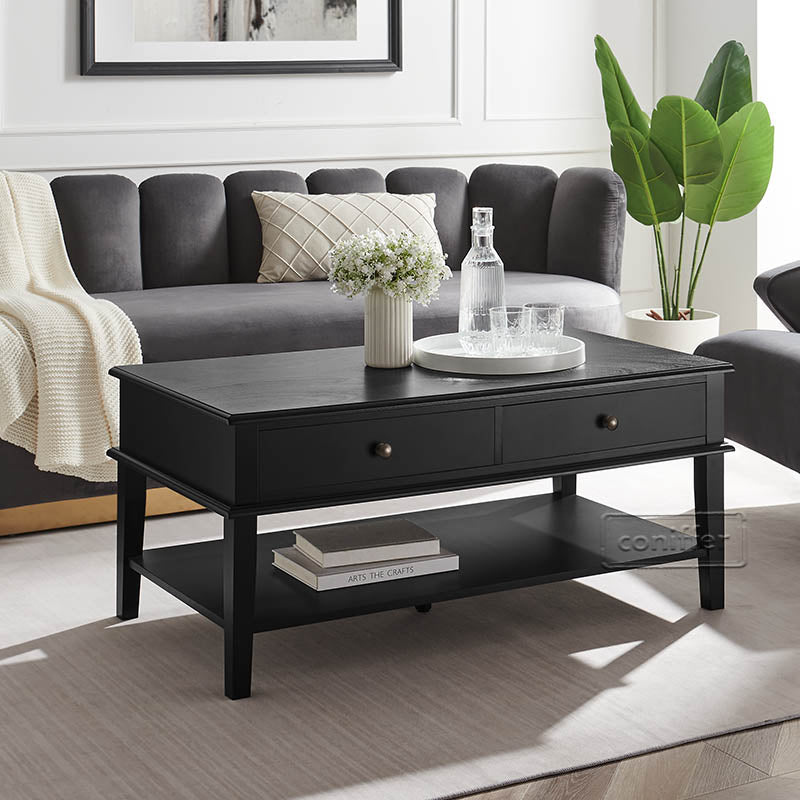 WOODEEM Modern Black Coffee Table with Storage Shelf and 2 Drawers for Living Room